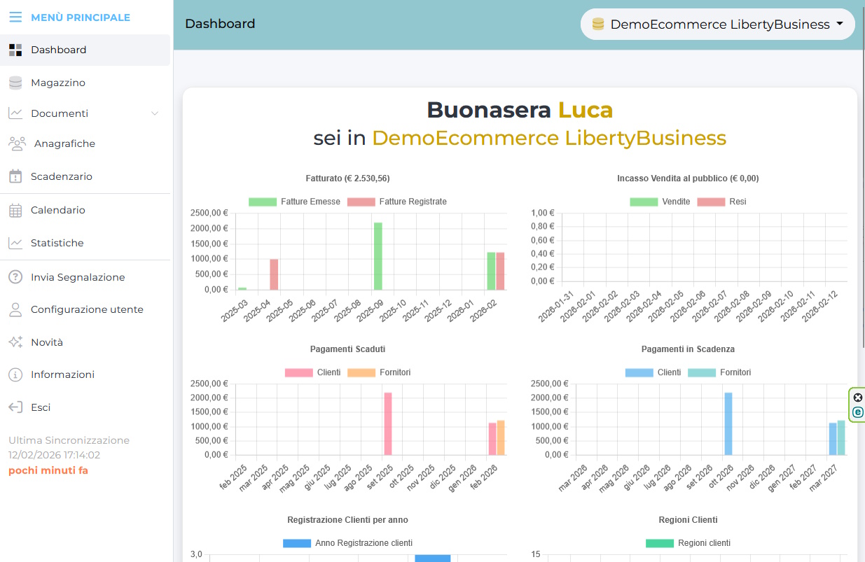 - Delle statistiche sul fatturato attivo e passivi